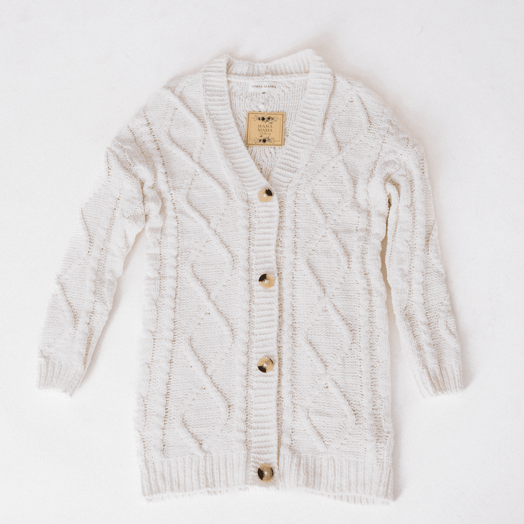 Ivory Cable Knit Cardigan - Women - HAHA MAMA Clothing
