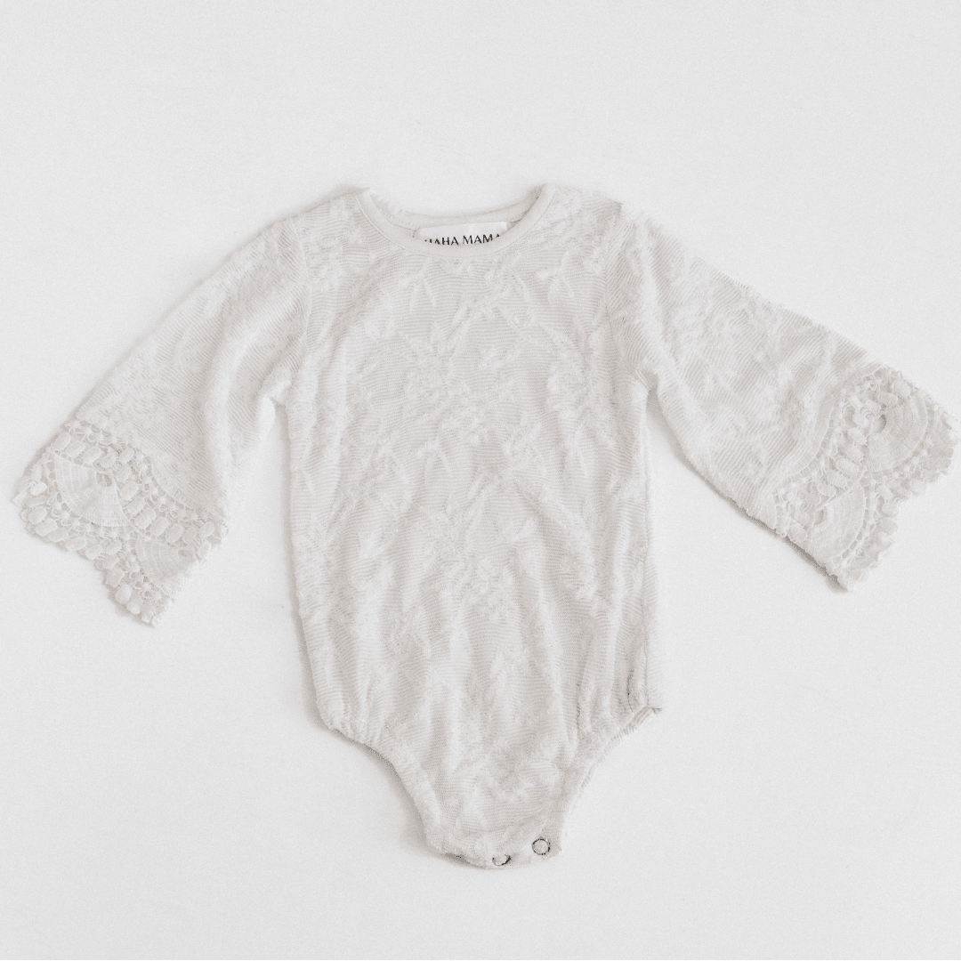 Dress your little one in pure elegance with this ivory lace onesie—a showstopper that's as practical as it is precious. Featuring a convenient button closure and silky rayon fabric adorned with delicate lace details, including beautifully trimmed sleeves, this piece strikes the perfect balance between comfort and style. Built to last through siblings and special occasions, it's the kind of heirloom-worthy treasure you'll cherish for years.