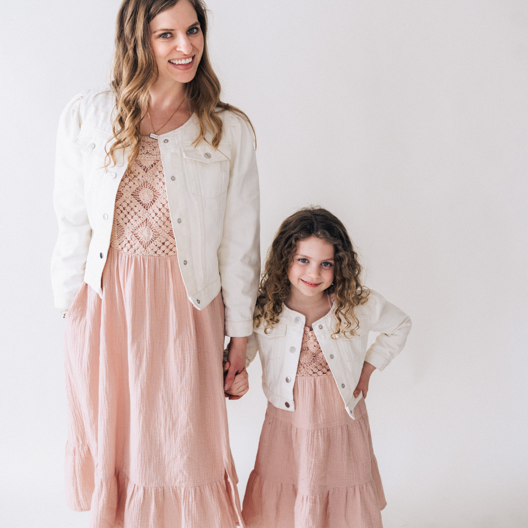 It's time to make a statement - with your mini! The perfect piece to layer on top of your favorite dress or top, this adorable ivory denim jacket features playful pleated sleeves and sleek silver buttons. Pass down your love for fashionable layering to your little one. Talk about a match made in heaven!