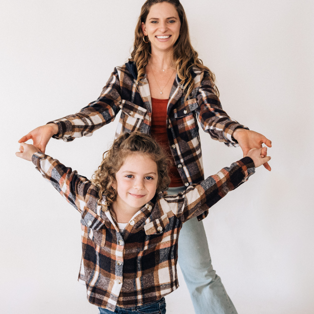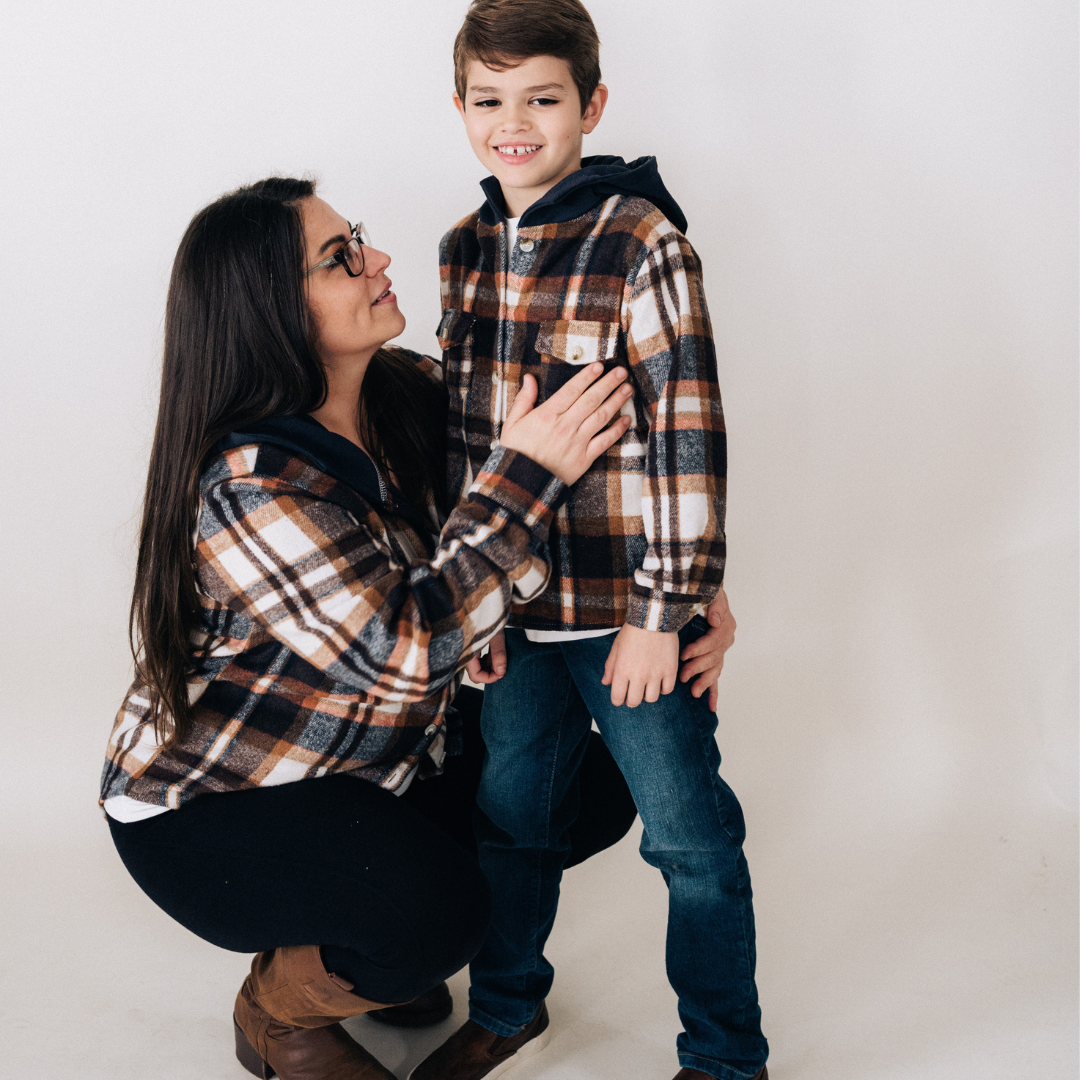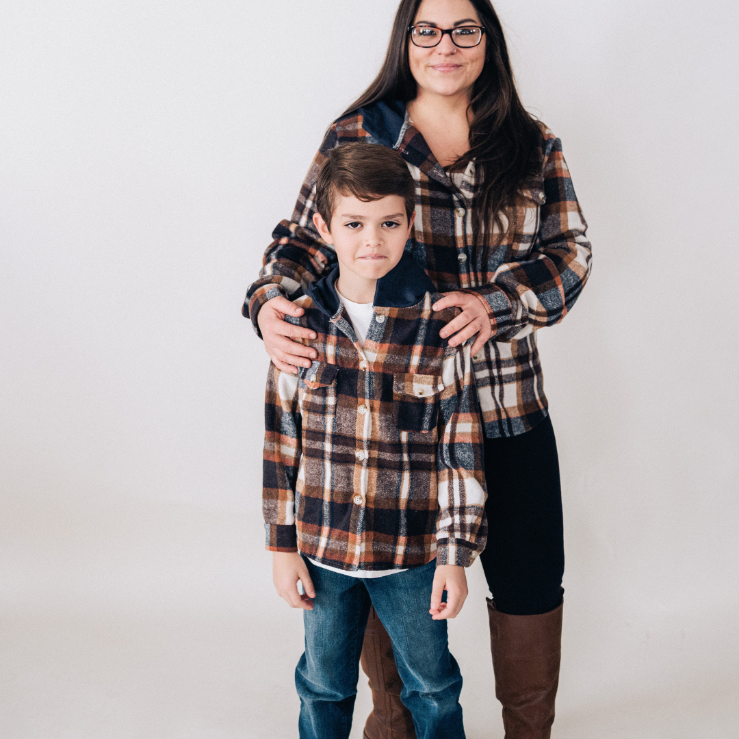 Navy Copper Plaid Flannel - Hooded Adult