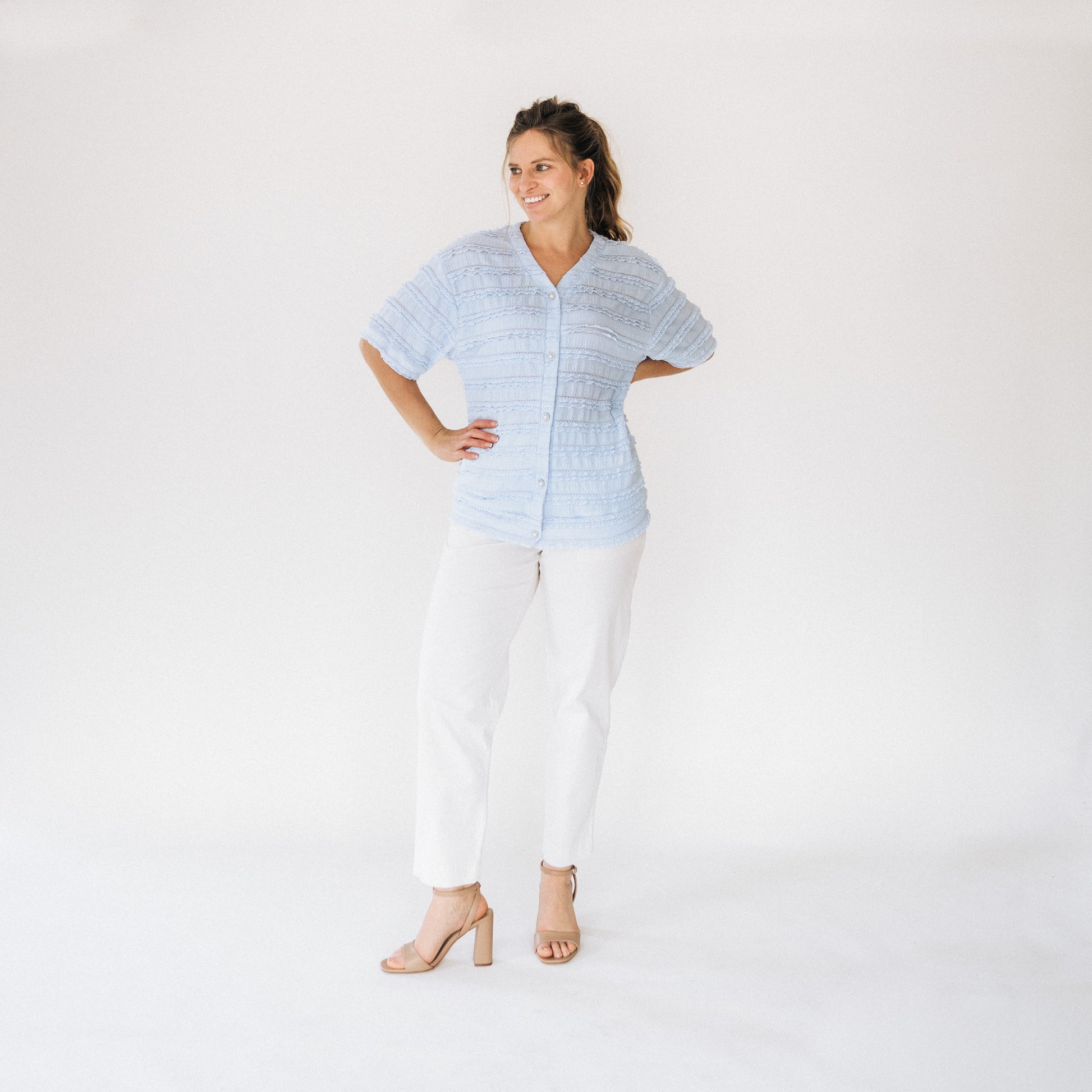Ruffle Blue Pearl Cardigan- Women