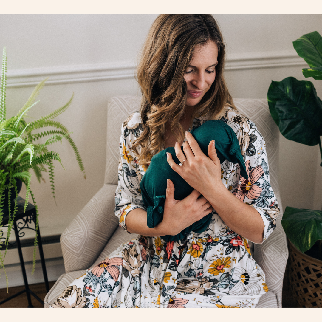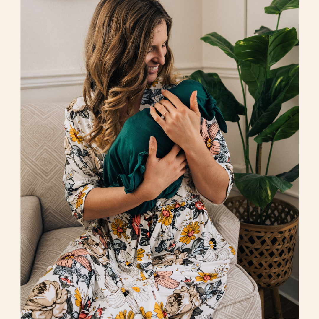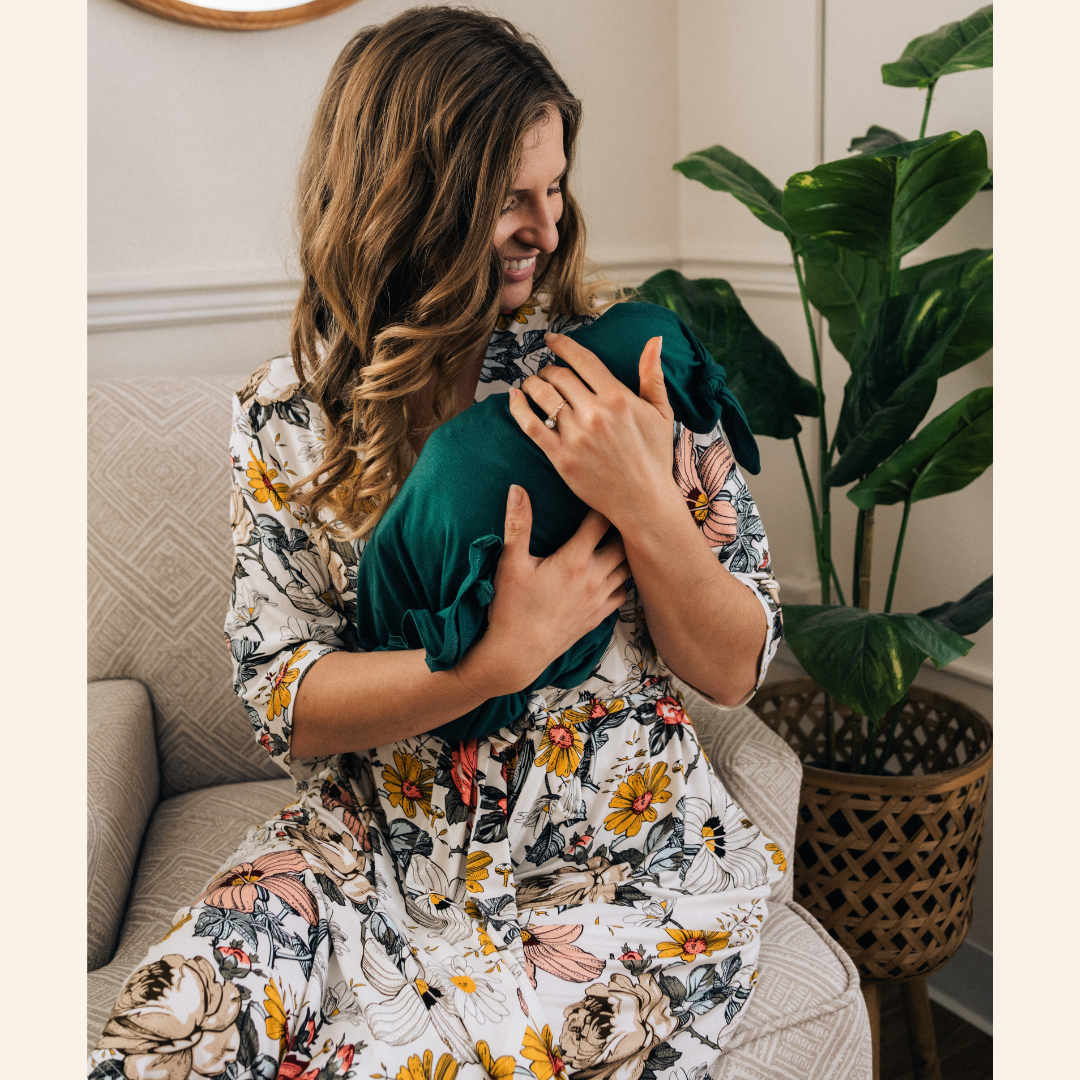 Vintage Floral Maternity Delivery Gown & Emerald Green Swaddle